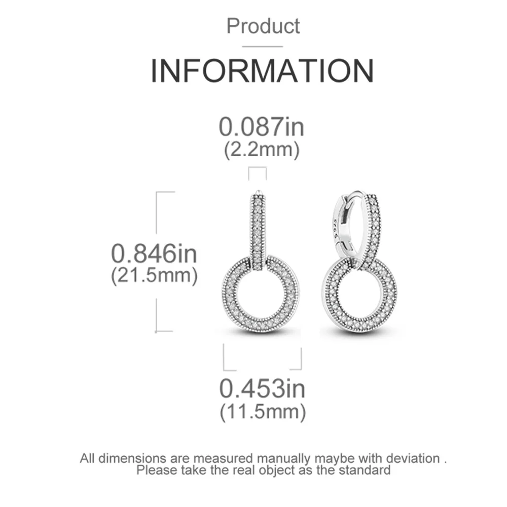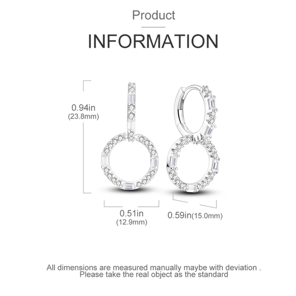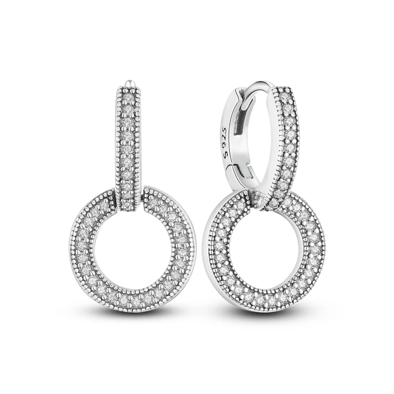925 Silver Ear Jewelry Hollow Circle Shiny Zircon Inlaid Dangle Earrings Elegant Style Daily Casual Chain Wedding Ladies' Gifts