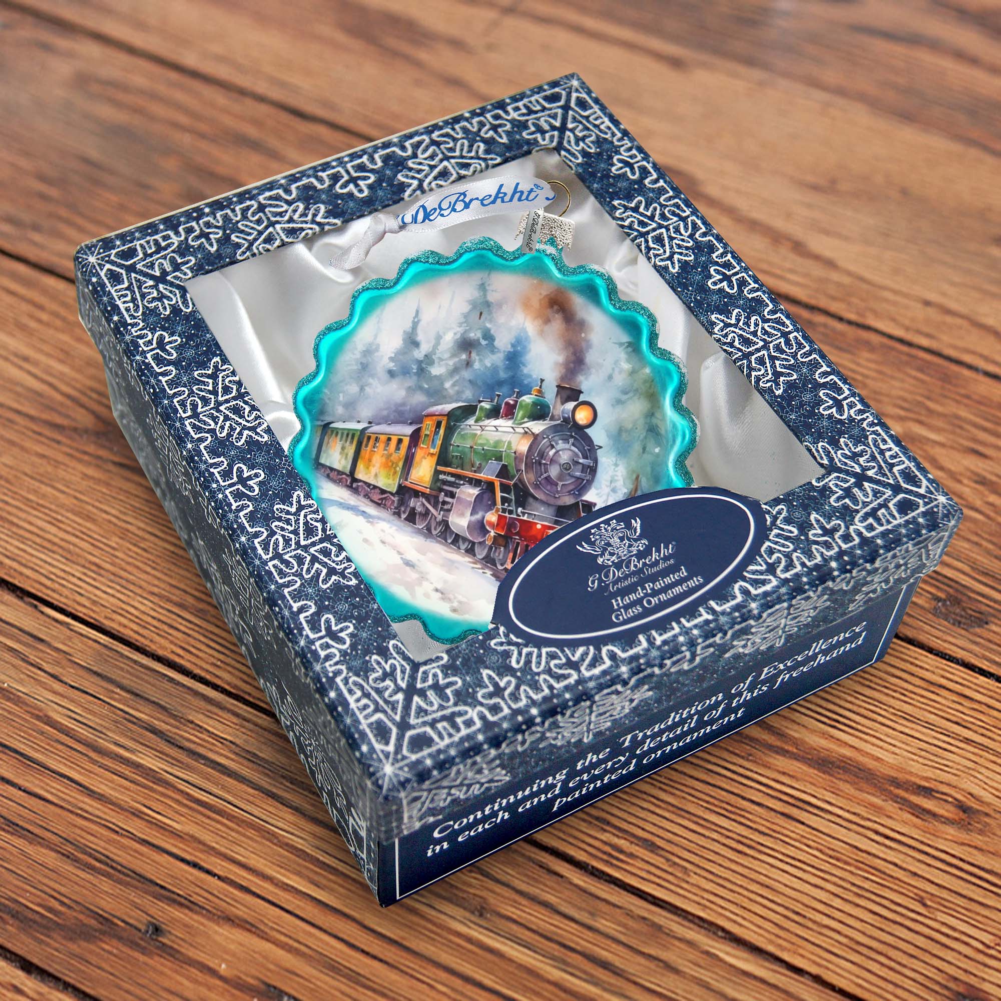 Christmas Train Wreath Glass Ornament by G. Debrekht - Christmas Decor - 759-051