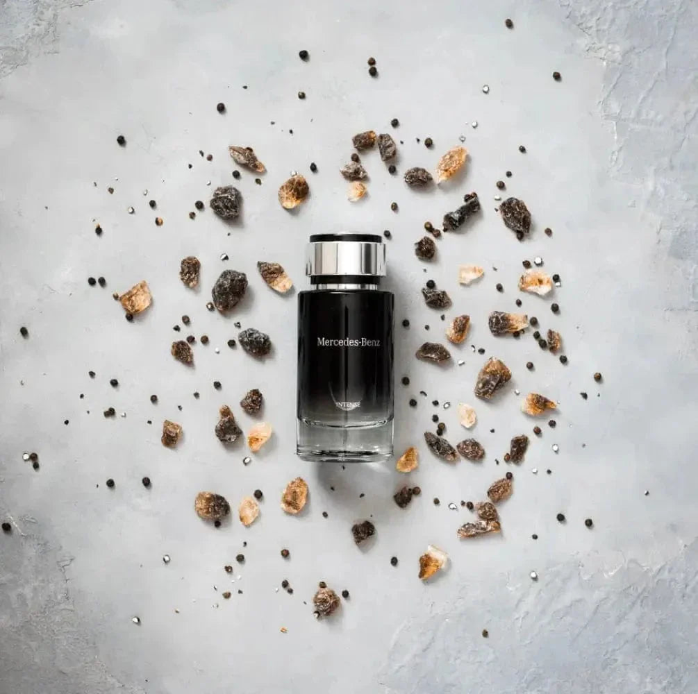 Belonging to the Woody Spicy fragrance family, Mercedes-Benz Intense opens with vibrant top notes of violet leaf, lemon, Calabrian bergamot, and Italian mandarin, creating a fresh and invigorating first impression. The heart of the fragrance is a masterful combination of violet, bourbon pepper, nutmeg, and galbanum, adding a spicy and aromatic depth. Finally, the base notes of bourbon vetiver, cedar, cetalox, and patchouli provide a rich and lasting finish, ensuring the scent remains memorable throughout the day.
