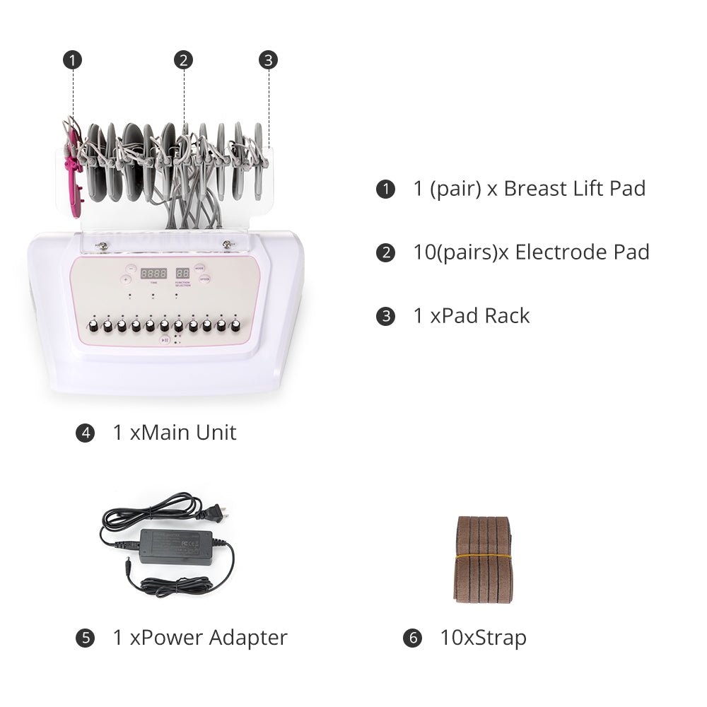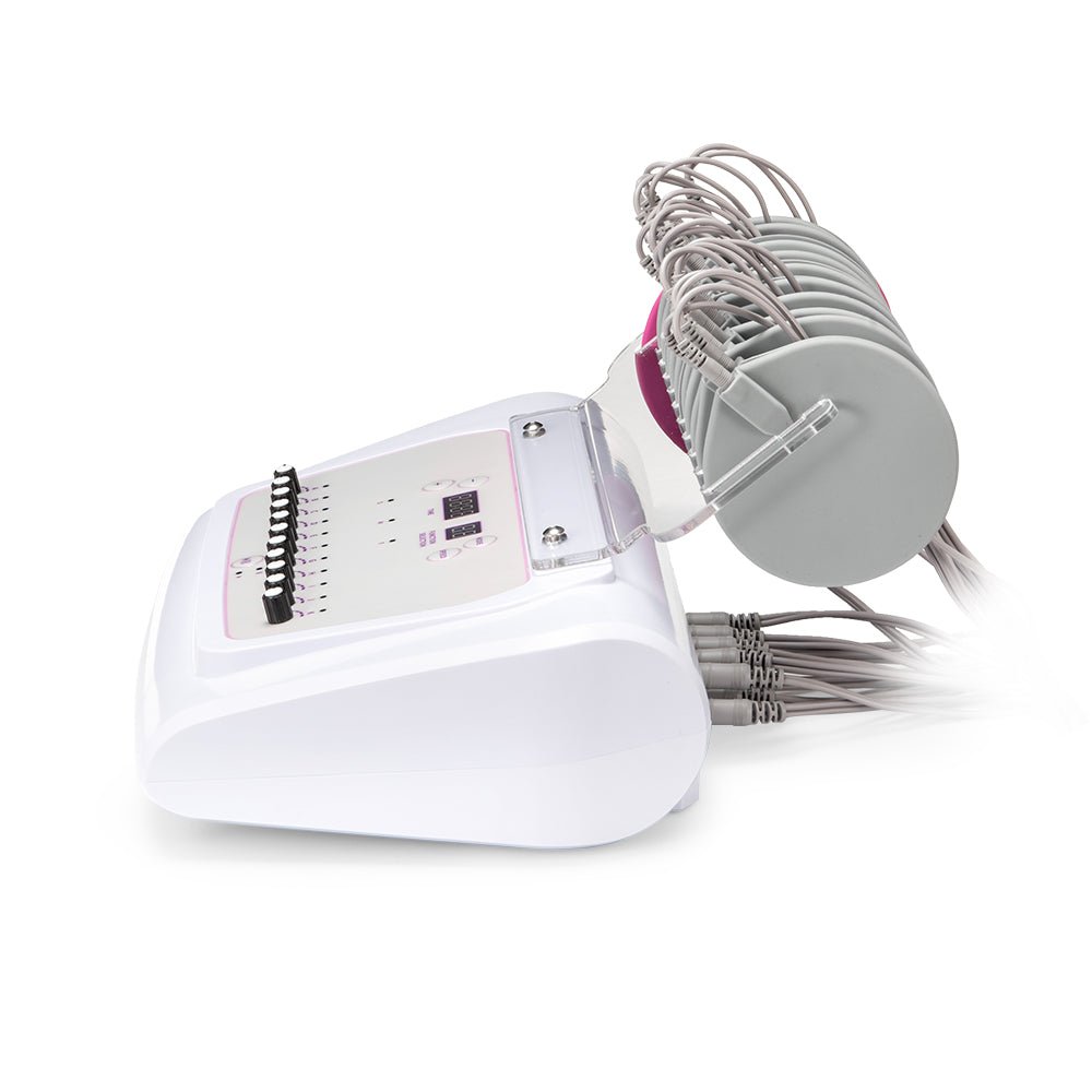 This professional-grade EMS (Electrical Muscle Stimulation) device is designed to support muscle activation and body toning through low-frequency electrical pulses. With 10 pairs of electrode pads, a pair of breast pads, and adjustable straps, it offers versatile use across various body areas. Ideal for beauty and wellness environments, this Class I device enhances relaxation, promotes a sense of firmness, and contributes to overall body wellness. Suitable for non-invasive use in spas, salons, or at home.