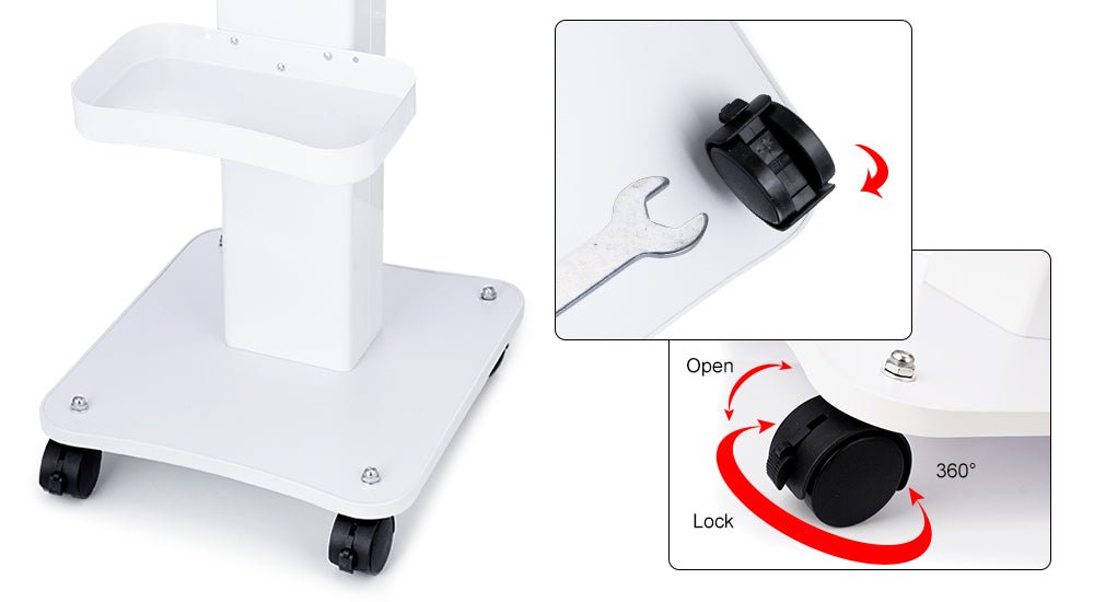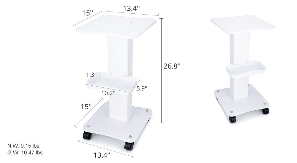 The perfect organizational solution for beauty salons and spas. Crafted with durability and functionality in mind, this cart provides ample storage space for equipment and supplies, keeping your workspace tidy and efficient. With its convenient rolling design, you can easily transport tools and machines wherever they're needed. Whether you're a professional esthetician or a DIY enthusiast, this cart ensures seamless organization and accessibility for all your beauty essentials. Elevate your salon or spa experience with our reliable and stylish trolley cart