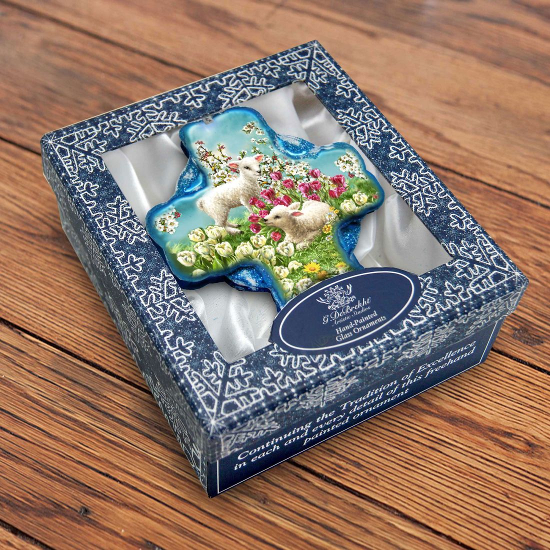 Sheep and Flowers Glass Ornament by D. Gelsinger - Nativity Holiday Decor - 758-020-DG