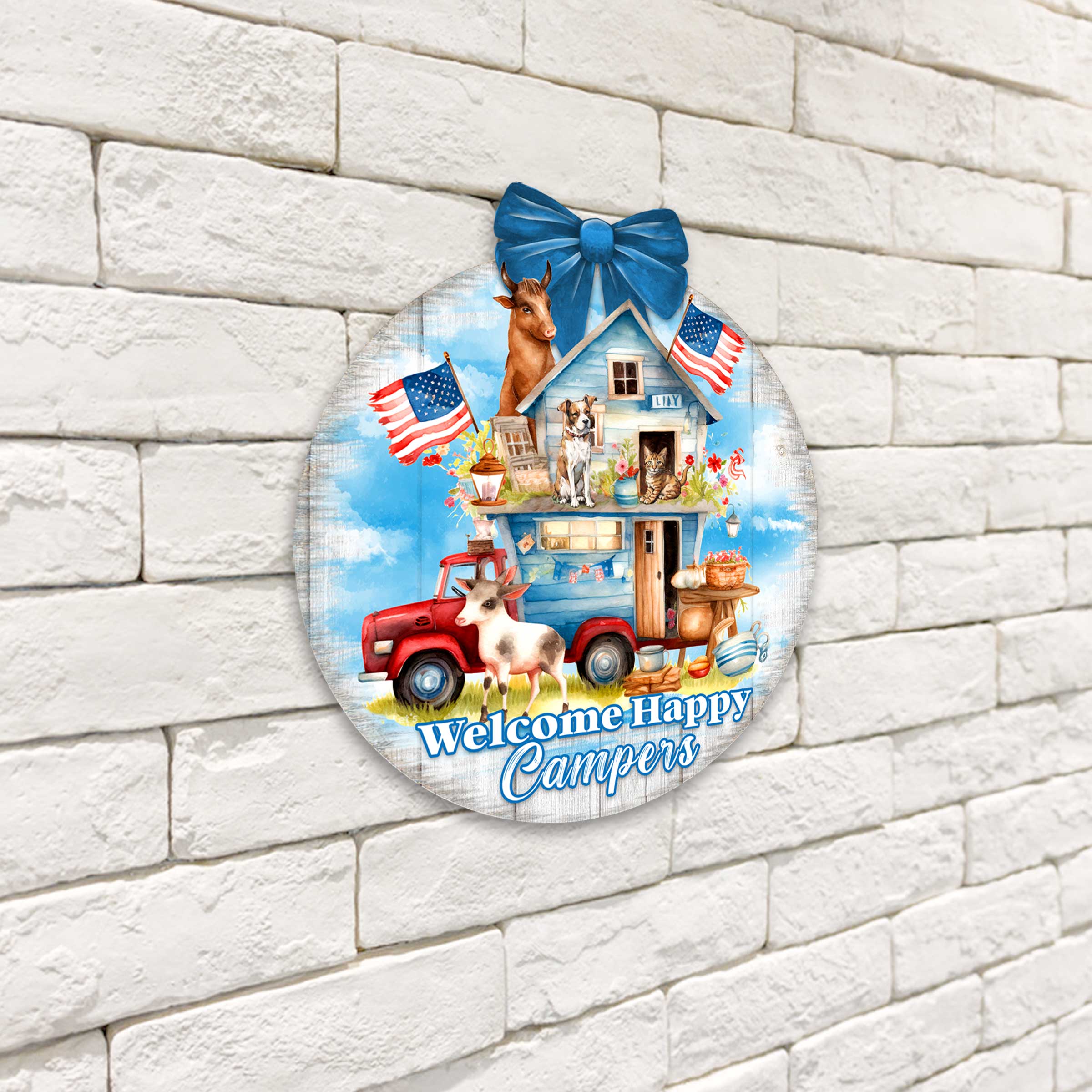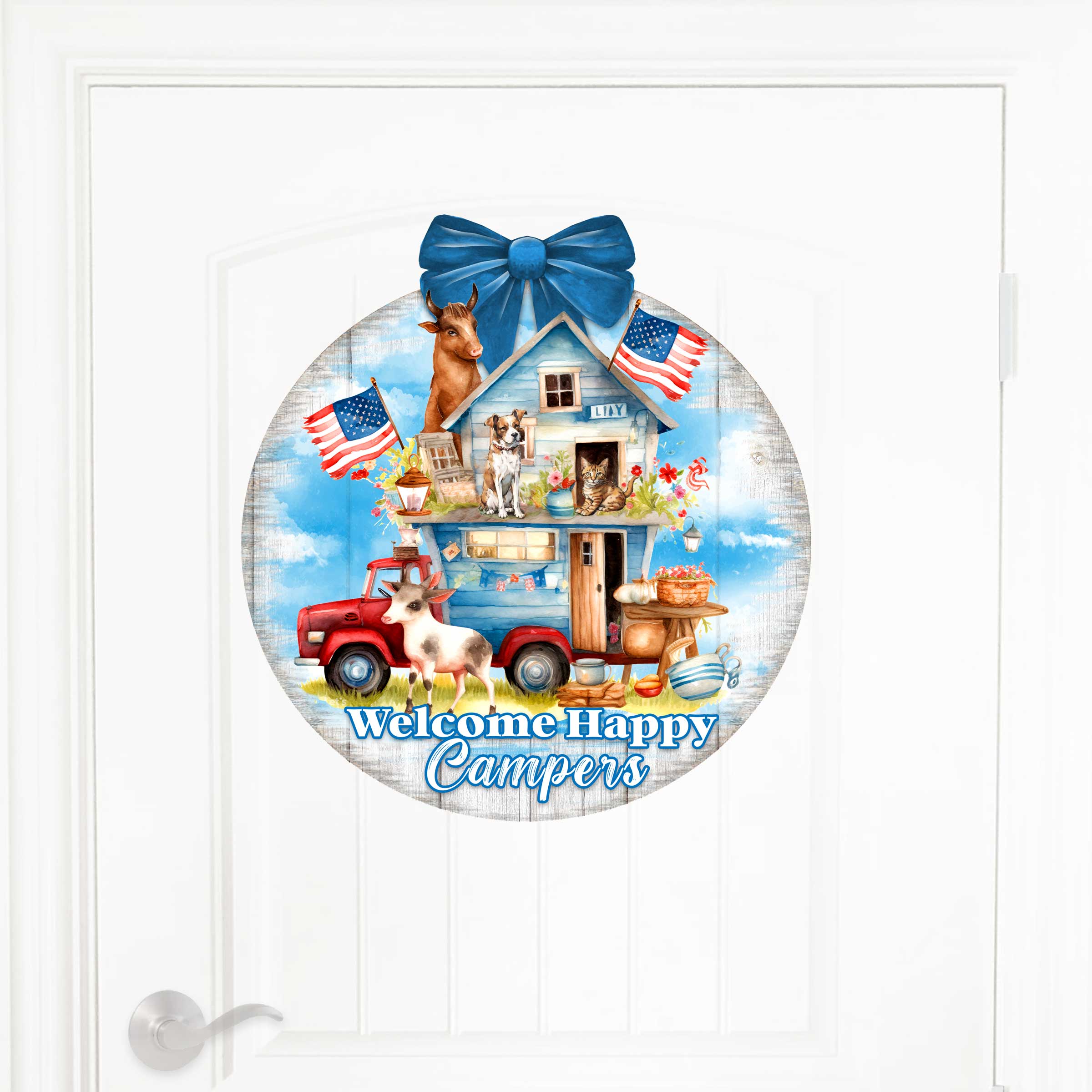 Welcome Happy Campers Sign Front door welcome sign Main entrance banner Welcome sign - Wooden front porch decor - 933114H